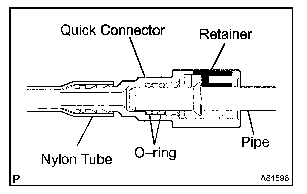 (a) Push in the quick connector to the pipe until the quick connector makes a "click" sound.