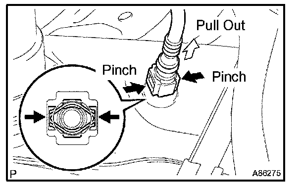 (1) Pinch the tube connector, then pull out the fuel tube No.1.