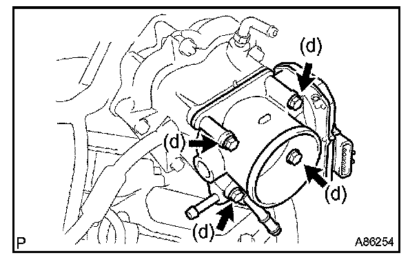 (d) Remove the 4 bolts, then remove the throttle body.
