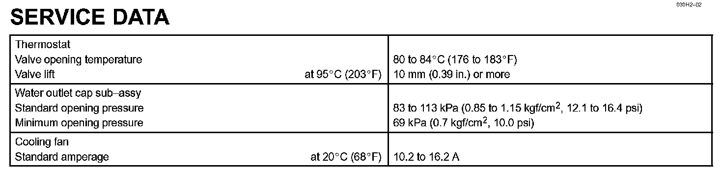 Cooling - Service Data: