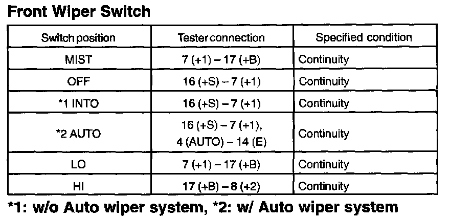 c. Operation Check (Front Wiper)