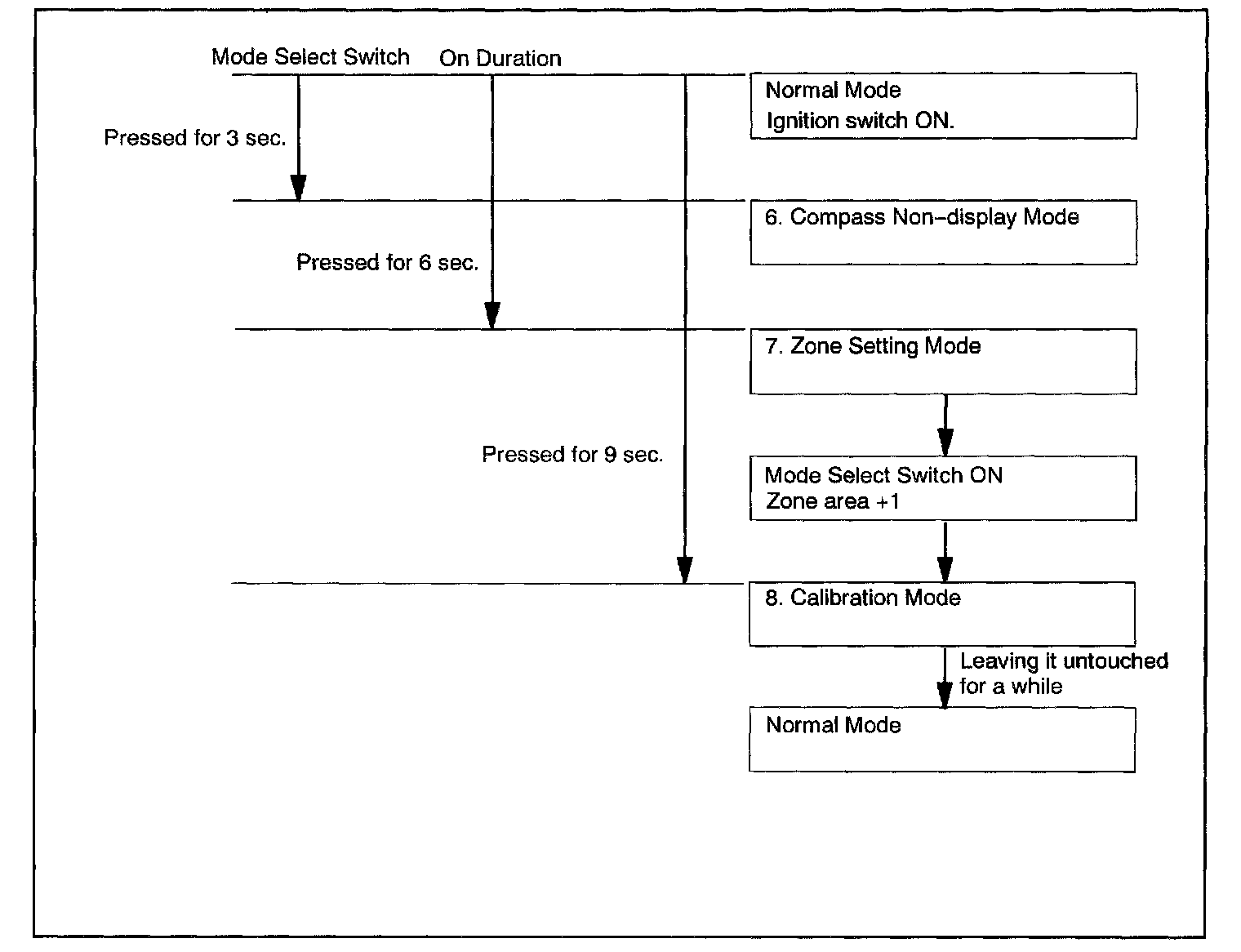 a. keep pressing the mode select switch for 3 sec. after selection of the compass display mode will activate the zone setting mode, showing a number (1-15) on the compass display.