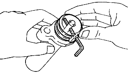 d. Using a 10 mm hexagon wrench, and the set bolt.