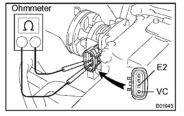 b. Using an ohmmeter, measure the resistance between terminals VC and E2.
