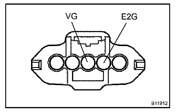 d. Using a voltmeter, connect the positive (+) tester probe to terminal VG, and negative (-) tester probe to terminal E2G.