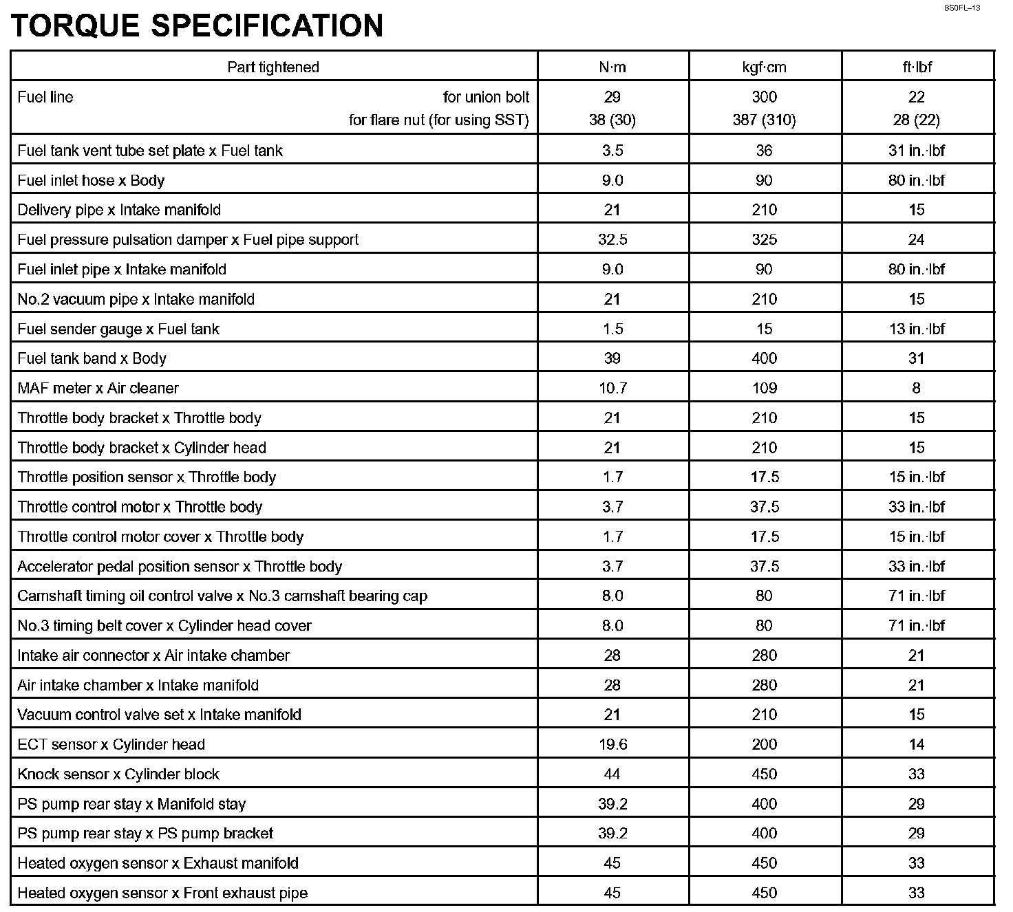 SFI - Torque Specification: