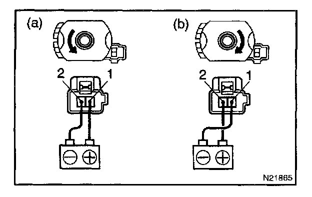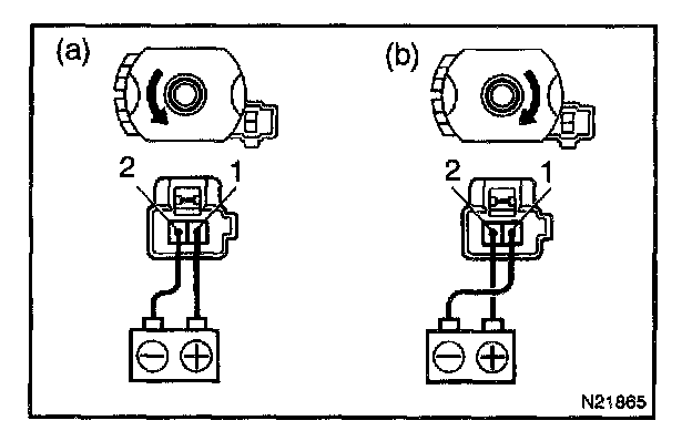 a. Connect the positive (+) lead from the battery to terminal 1 and the negative (-) lead to terminal 2, check that the motor turns counterclockwise.