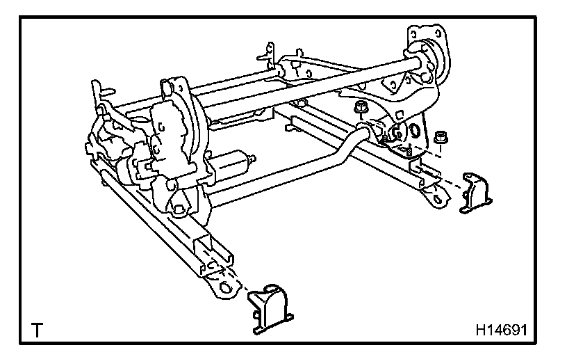 b. Remove the 2 nuts and No. 2 vertical seat link sub assembly.