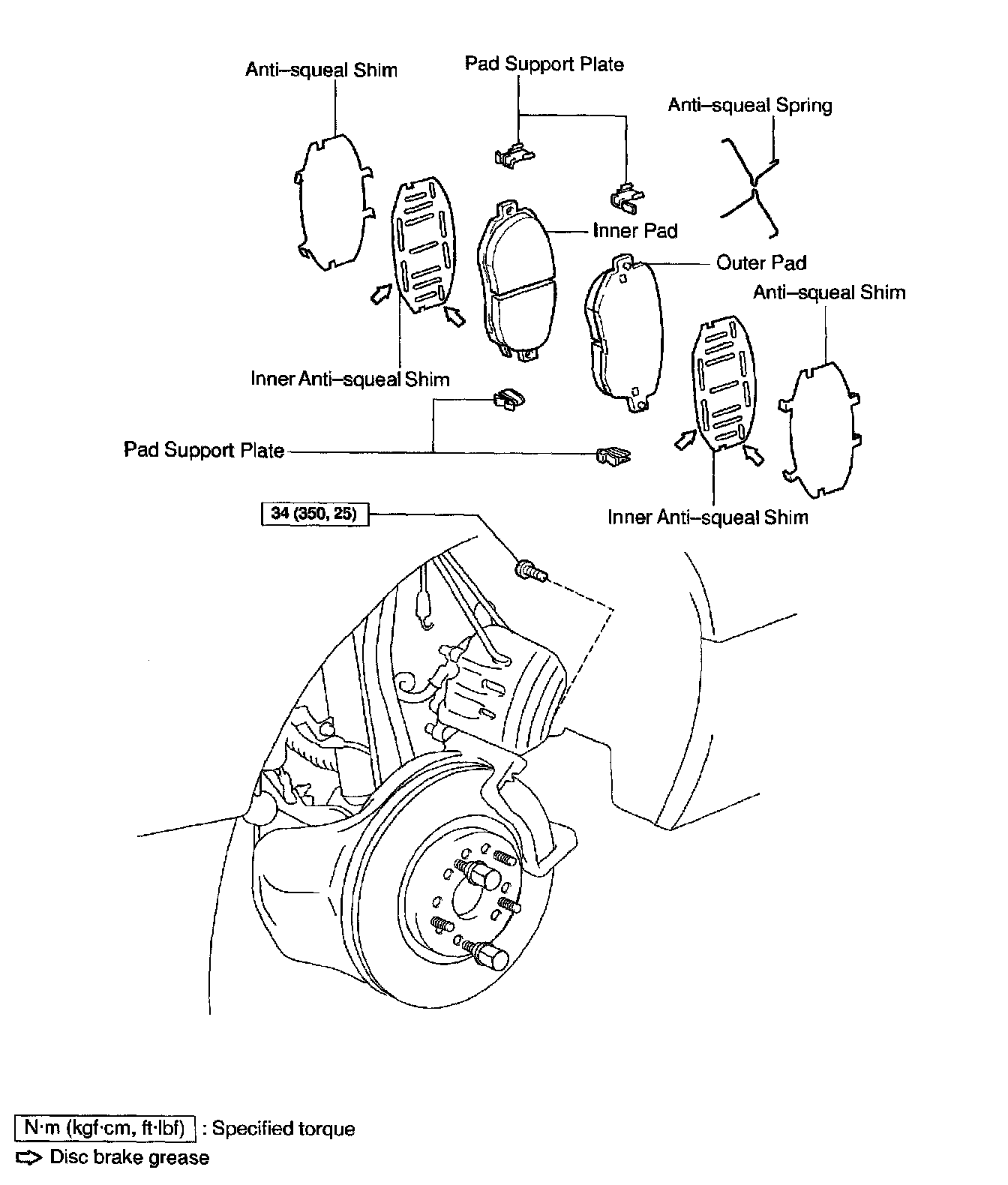 HINT: Apply disc brake grease to both sides of the inner anti-squeal shims.