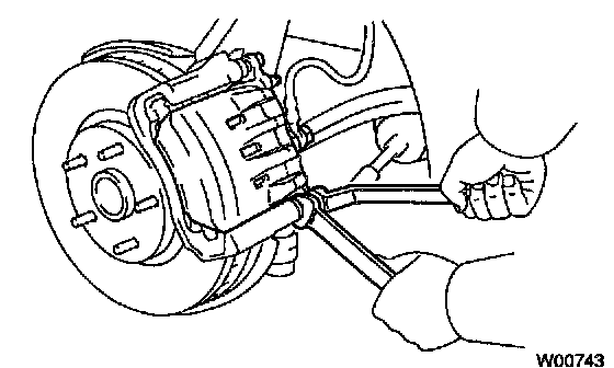HINT: Do not disconnect the flexible hose from the caliper.