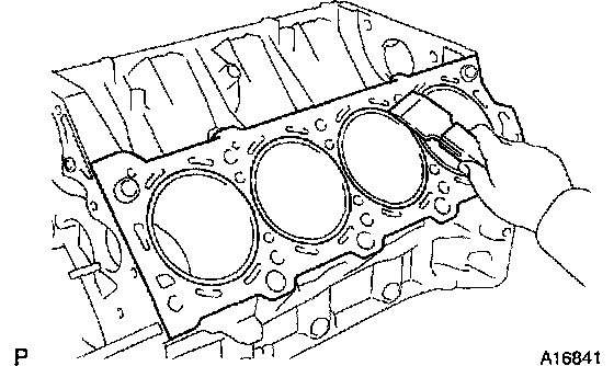 a. Using a gasket scraper, remove all the gasket material from the top surface of the cylinder block.