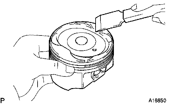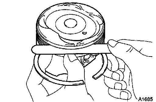 b. Inspect the piston ring groove clearance. Using a feeler gauge, measure the clearance between new piston ring and the wall of the ring groove.