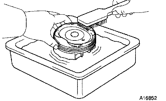 c. Using solvent and a brush, thoroughly clean the piston.