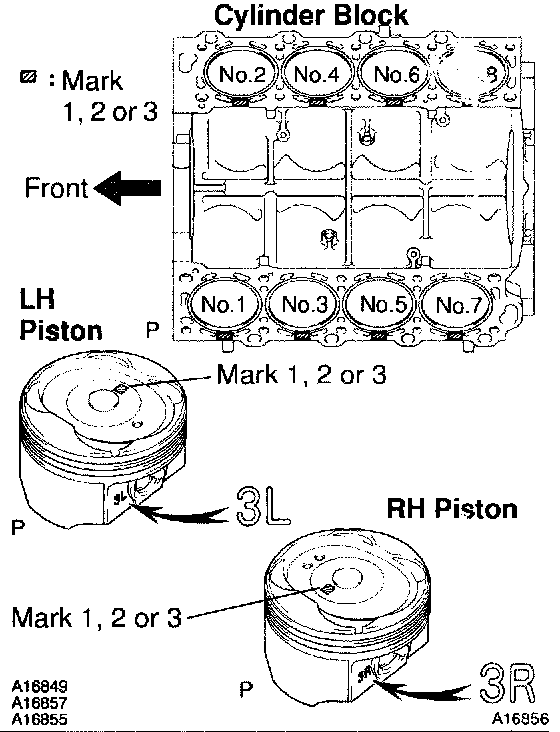 HINT: There are 3 sizes of the standard cylinder bore diameter, marked "1", "2" and "3" accordingly. The mark is stamped on the top of the cylinder block.