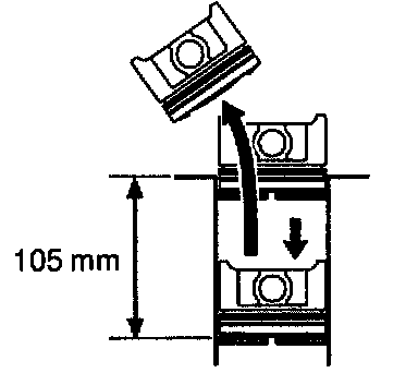 (2) Using a piston, push the piston ring a little beyond the bottom of the ring travel, 105 mm (4.13 inch) from the top of the cylinder block.
