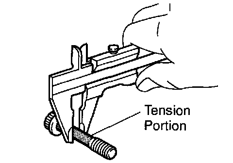 e. Using vernier calipers, measure the tension portion diameter of the main bearing cap bolt.