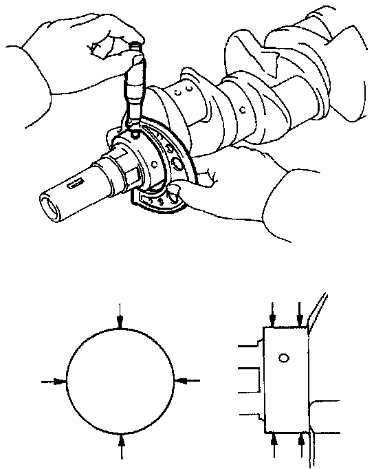 (2) Check each main journal and crank pin for taper and out-of-round as shown.