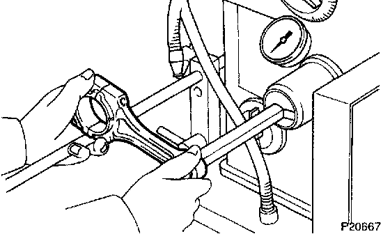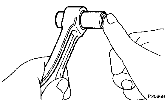 e. Check the piston pin fit at normal room temperature. Coat the piston pin with engine oil, and push it into the connecting rod with your thumb.