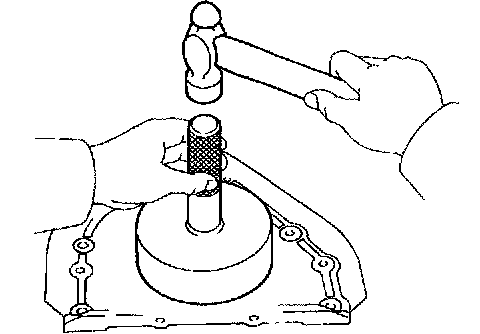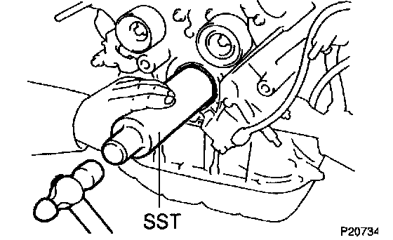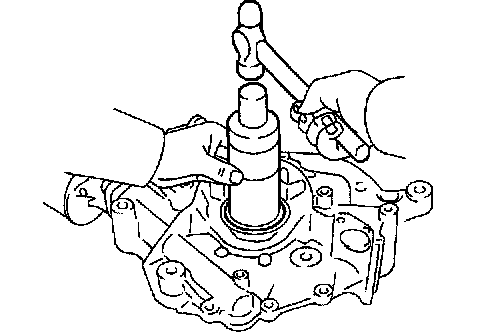 (2) Using SST and a hammer, tap in a new oil seal until its surface is flush with the oil pump body edge.
