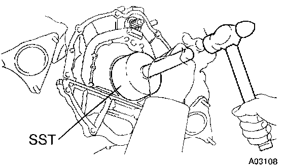 (4) Using SST and a hammer, tap in the oil seal until its surface is flush with the rear oil seal retainer edge.