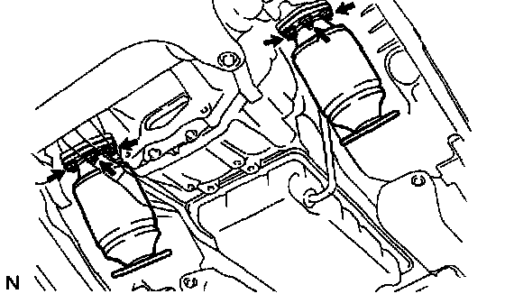 Remove the 6 nuts, 2 gaskets, LH and RH front TWC.