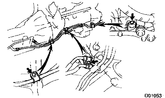 c. Disconnect the 2 oil cooler pipes from the transmission.