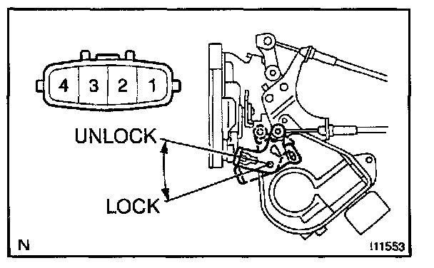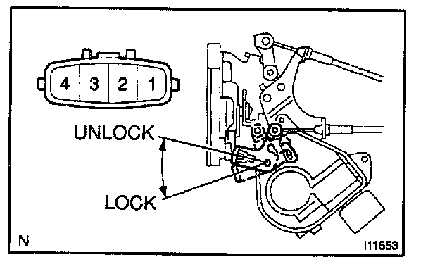 b. Reverse the polarity and check that the door lock link moves to UNLOCK position.