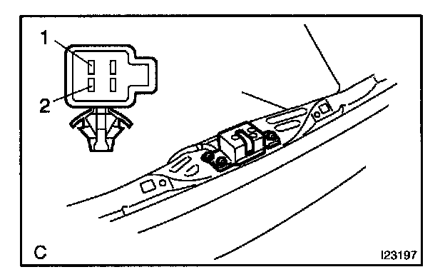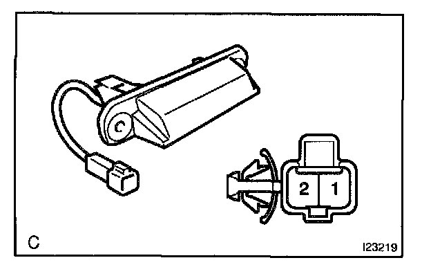 Connect positive (+) lead to the terminal 1 and negative (-) lead to the opener motor body, and check that the motor operates. If operation is not as specified, replace the motor assembly.