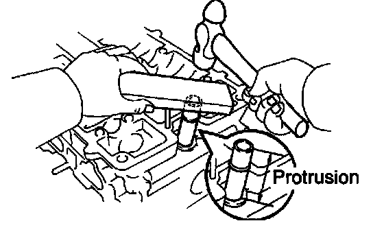 b. Using a wooden block and hammer, tap in a new heater union, leaving 48 mm (1.89 inch) protruding from the cylinder head.
