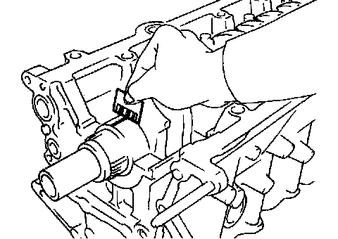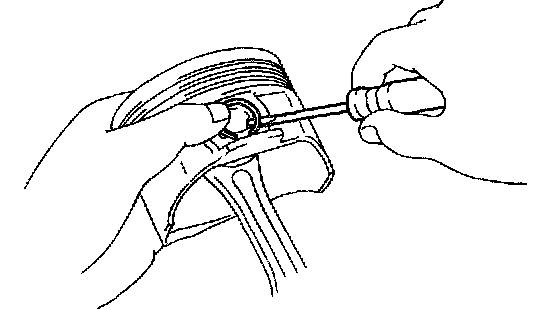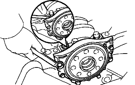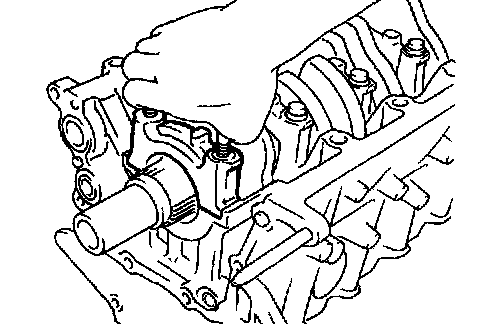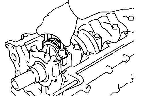 b. Remove the oil seal retainer by prying the area between the oil seal retainer and main bearing cap with a screwdriver.