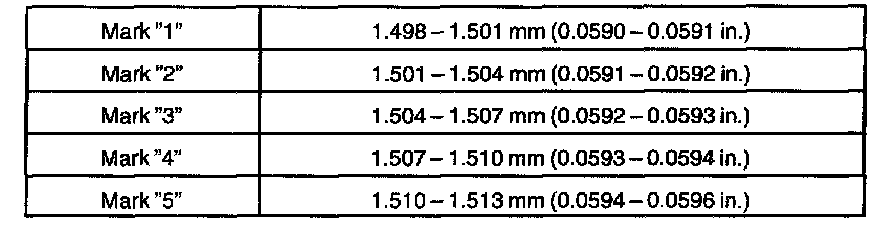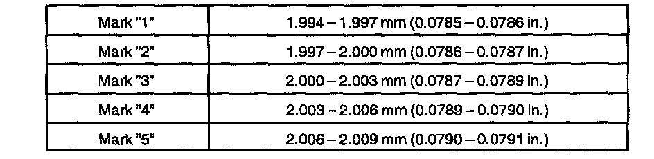 Thrust washer thickness: 1.940 - 1.990 mm (0.0764 - 0.0783 inch)