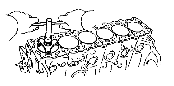 b. Push the piston, connecting rod assembly and upper bearing through the top of the cylinder block.