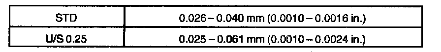 Standard thrust clearance: 0.250 - 0.402 mm (0.0098 - 0.0158 inch)