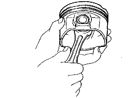 Try to move the piston back and forth on the piston pin. If any movement is felt, replace the piston and pin as a set.