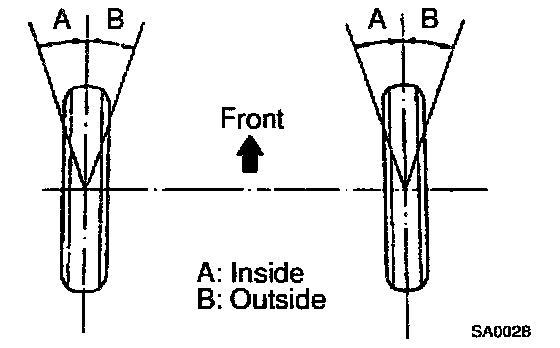 If the right and left inside wheel angles differ from the specified value, inspect the toe-in.
