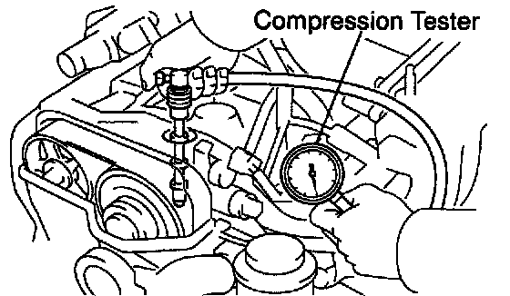 HINT: If there is lack of power, excessive oil consumption or poor fuel economy, measure the compression pressure.
