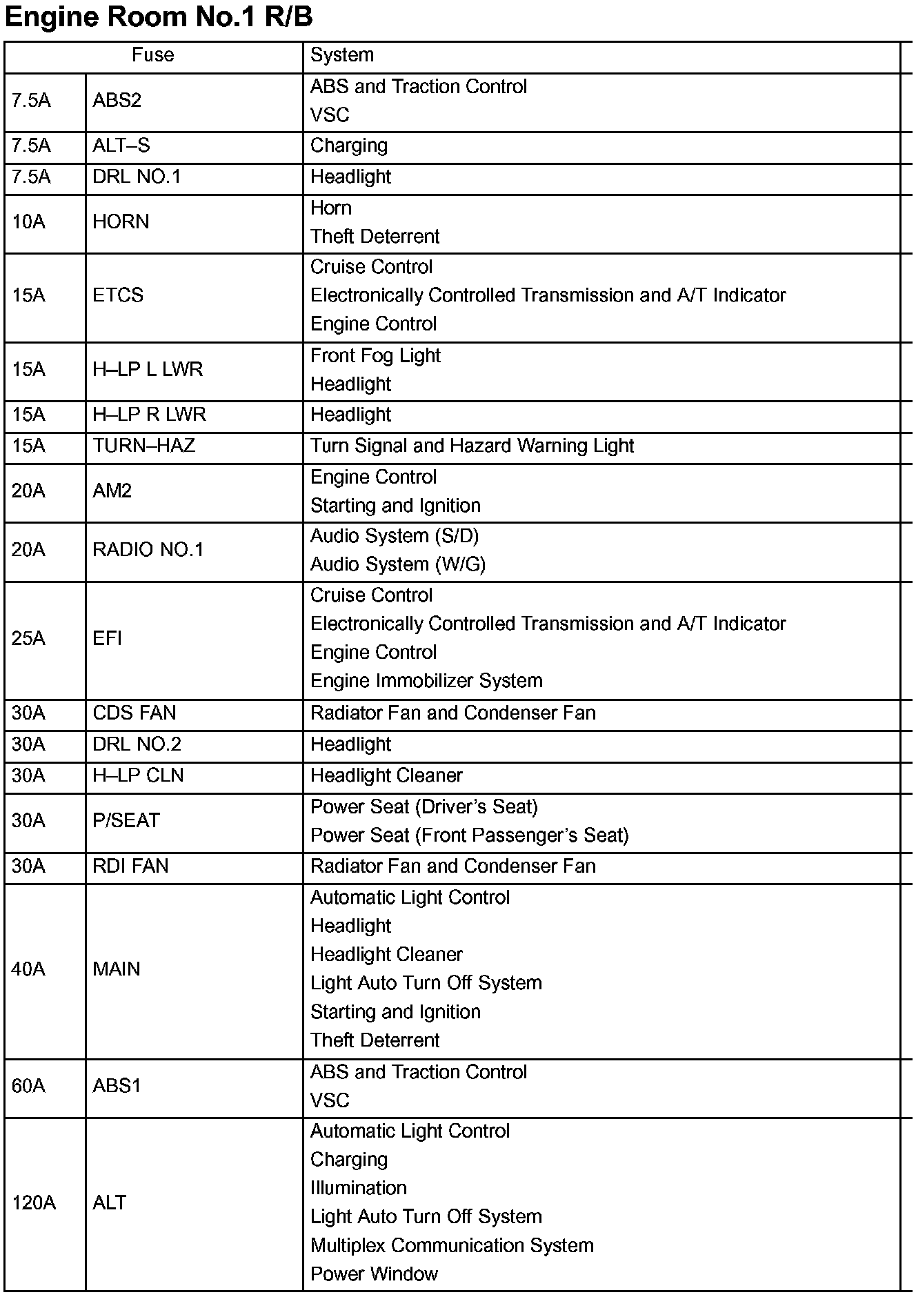 Engine Room Fuse ID