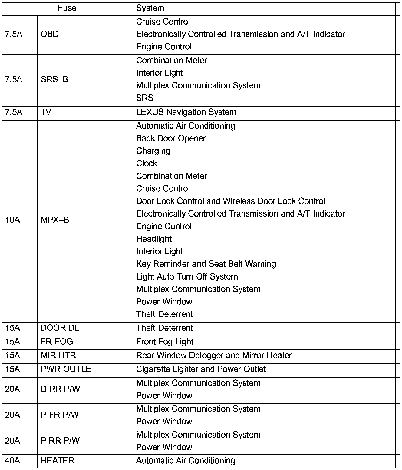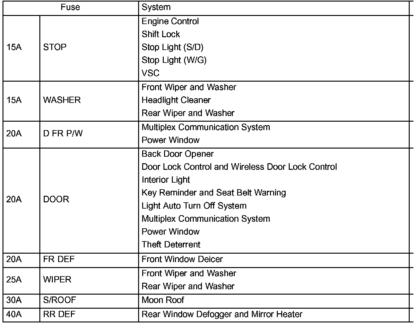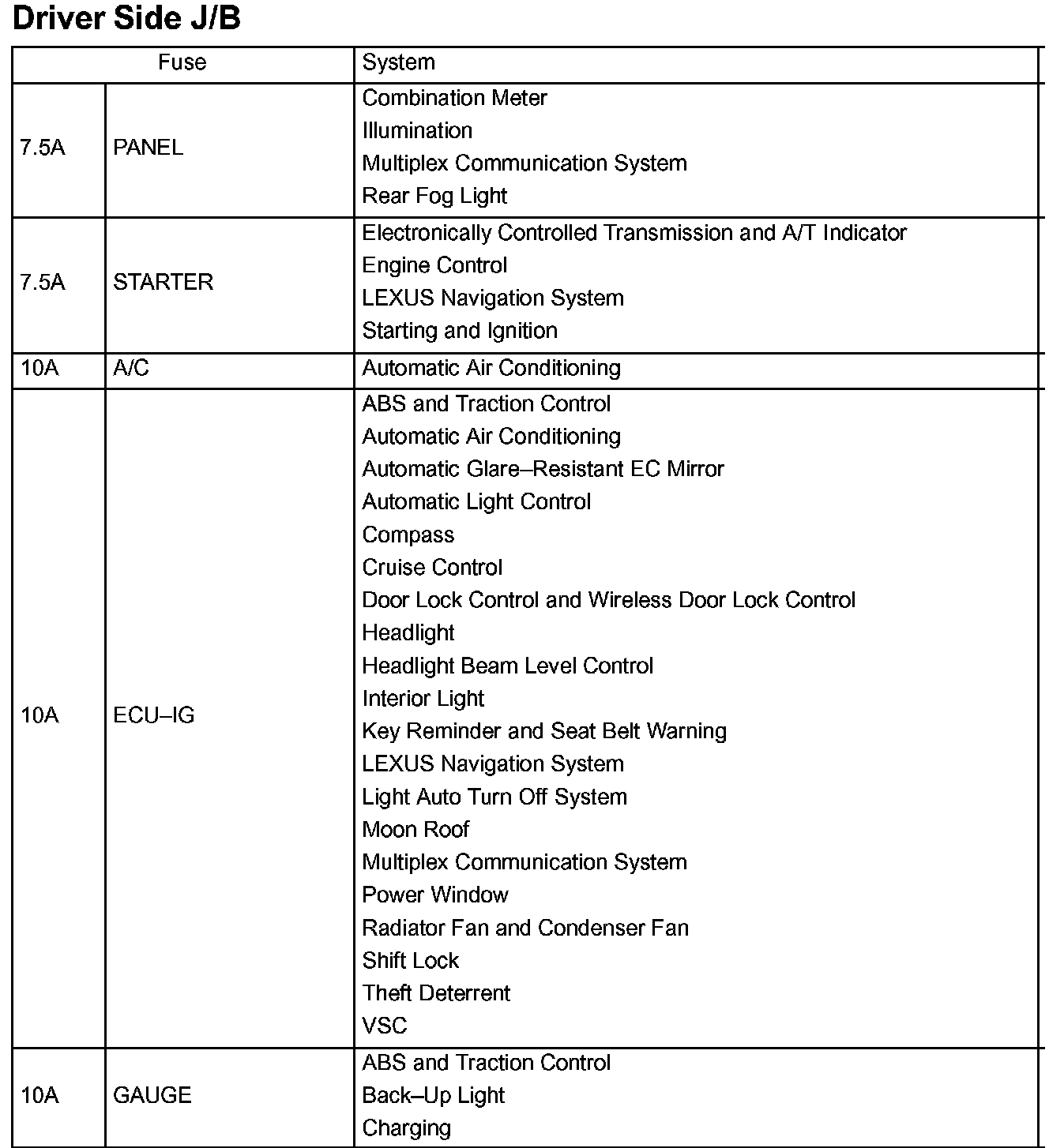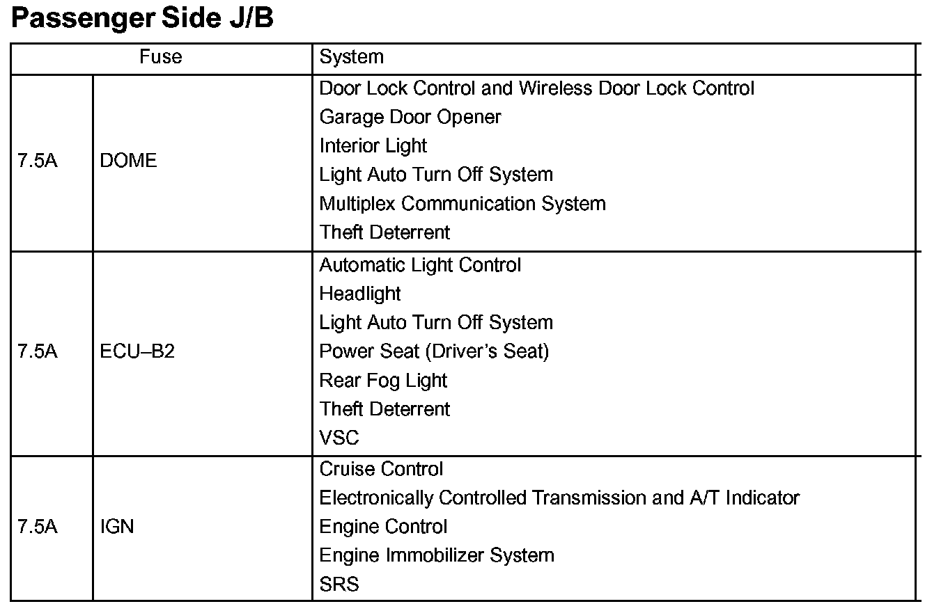 Driver Side J/B Fuse ID