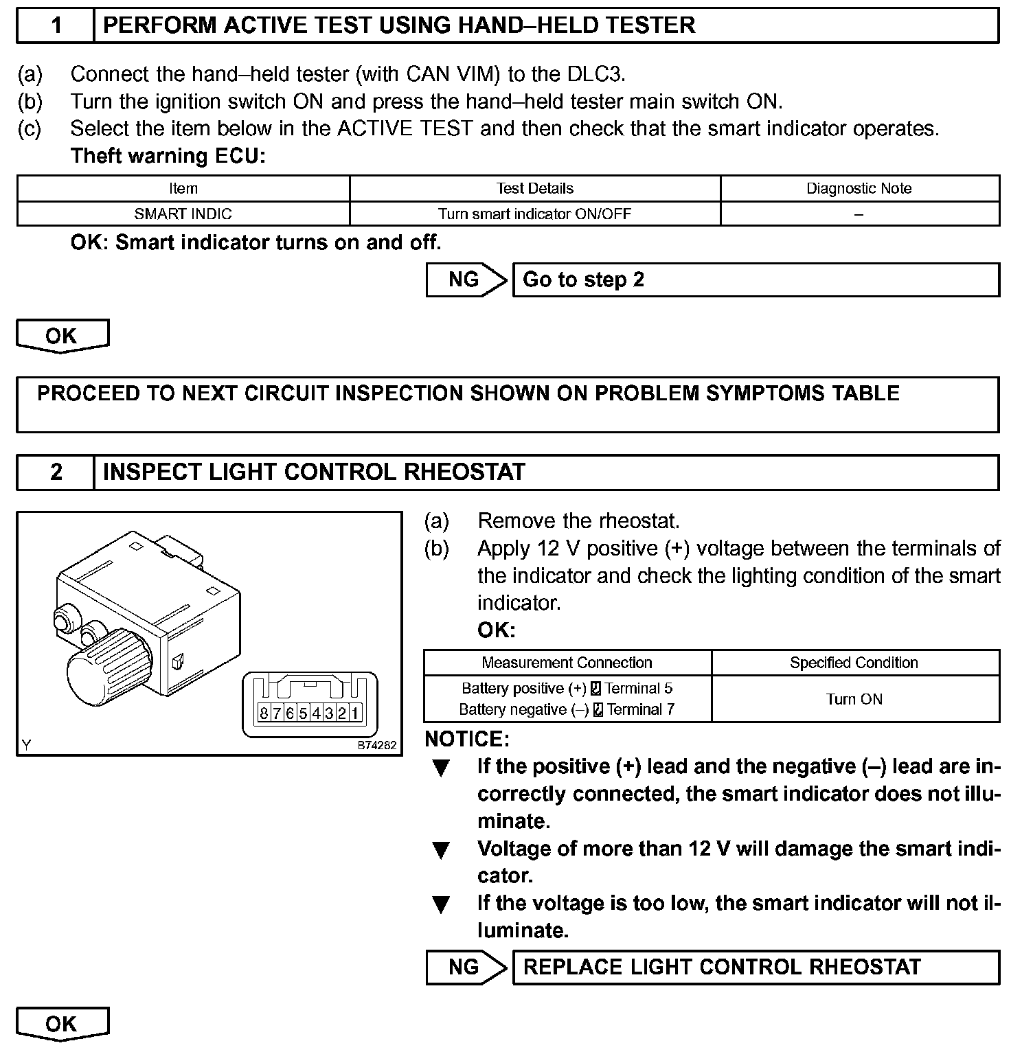 When the smart key system is preparing to be set, this circuit illuminates the indicator.