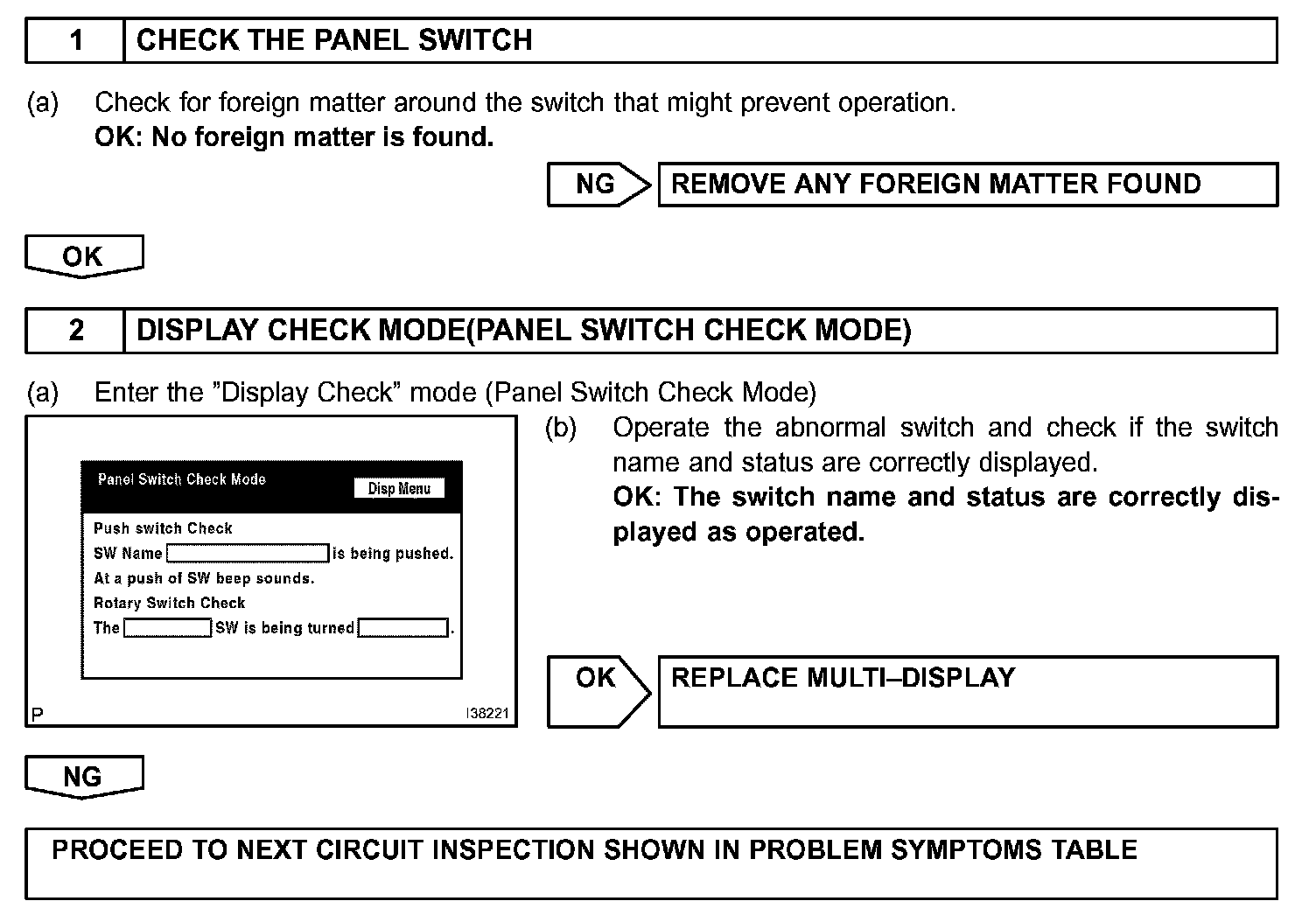 PANEL SWITCH DOES NOT FUNCTION