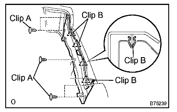 a. Using a clip remover, remove the 5 clips labeled A.