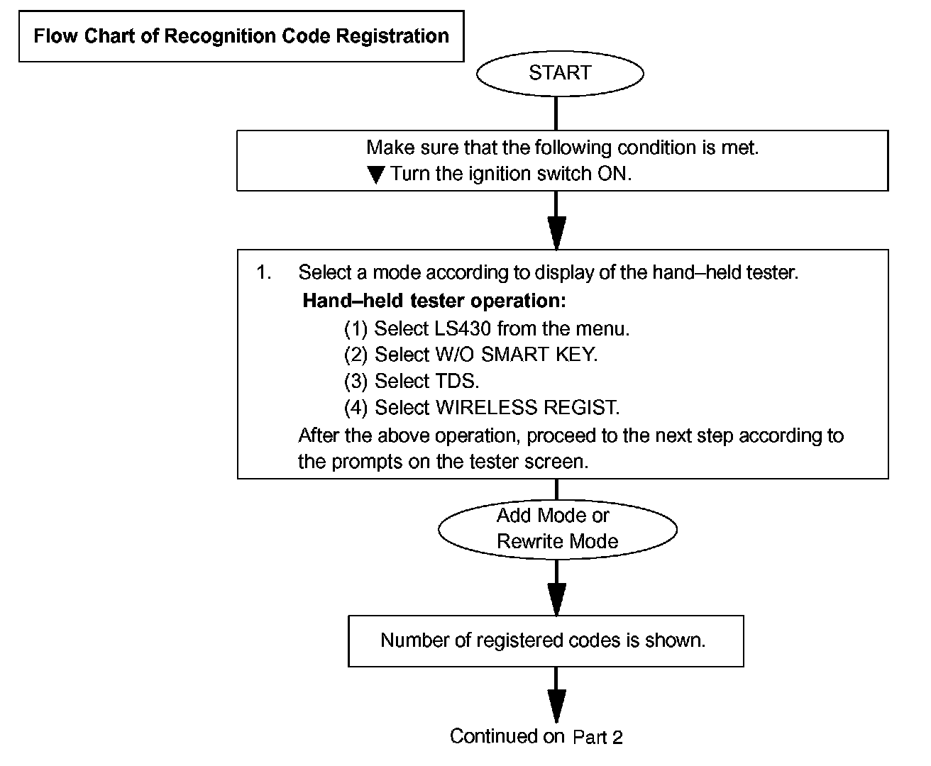 - Recognition code registration is necessary when replacing the door control transmitter or the door control receiver. The key has 2 codes: the key code (immobilizer code) and wireless code. All of these cod types need to be registered. Refer to the key code (immobilizer code) registration procedures. [1][2]Initial Inspection and Diagnostic Overview