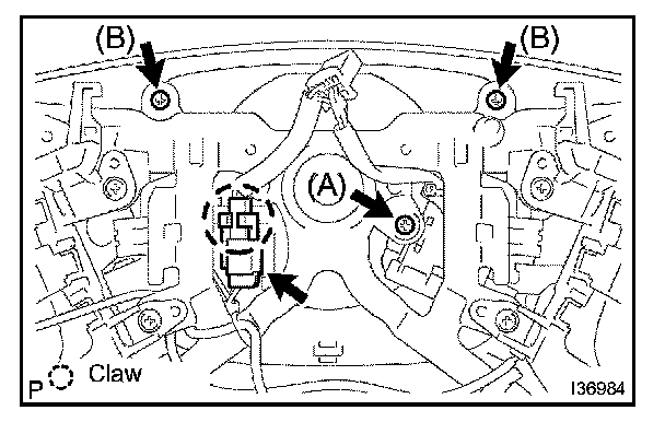 c. Remove screw (A) and disengage the claw.