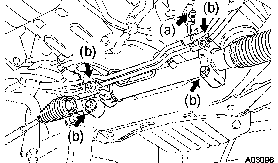 b. Remove the 4 bolts, and disconnect the PS gear housing from the front frame.