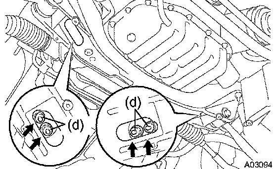 d. Remove the 4 nuts holding the engine mounting insulator to the front suspension crossmember.