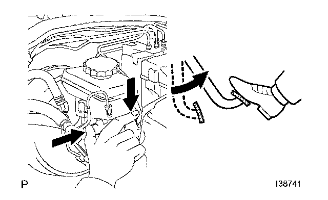 ^ To avoid brake fluid from adhering, cover the painted surface with cloth.