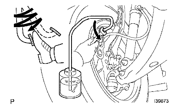 b. Depress the brake pedal several times, then loosen the bleeder plug with the pedal depressed.