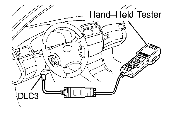 b. Connect the hand-held tester to the DLC3, then turn the ignition switch to the ON position.