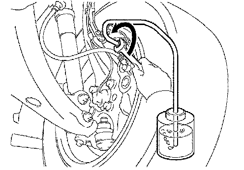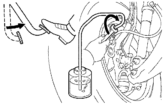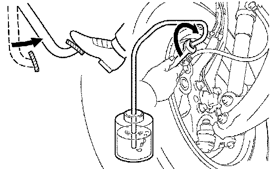 ^ During this procedure, the pedal seems heavy, but completely depress it so that the brake fluid comes out from the bleeder plug.