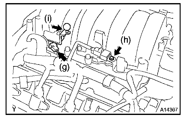 f. Install the 2 wire clamps on the engine wire (RH side) to the brackets on the RH delivery pipe.